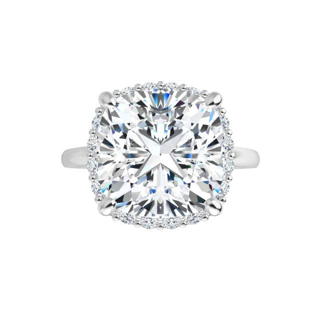14K White Cushion Engagement Ring