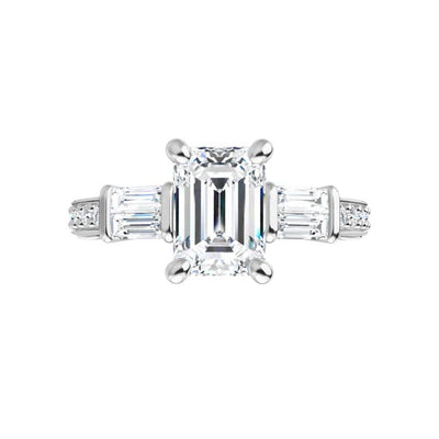 14k White Emerald Cut Engagement Ring
