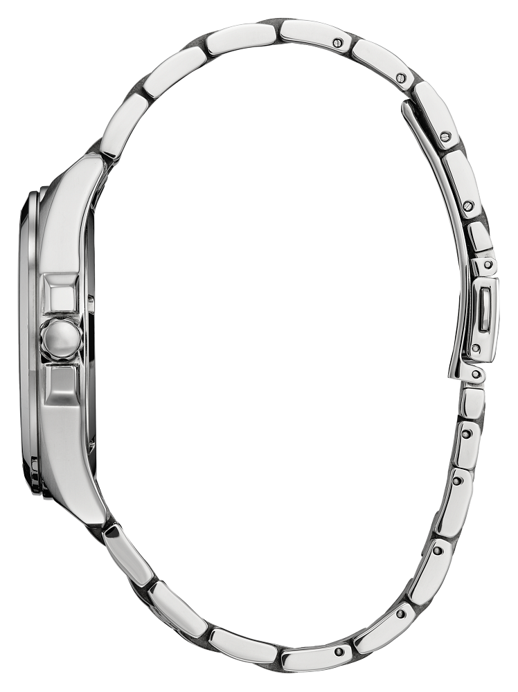 Make a distinctive style statement. Featuring a silver-tone stainless steel case and a green 3-hand dial encased in sapphire crystal, this men’s timepiece is a combination of functional simplicity with a touch of elegance. The silver-tone stainless-steel bracelet has a fold over clasp with push buttons, giving the watch an understated refinement. Water resistant to 100 meters and sustainably powered by any light with Eco-Drive that never needs a battery.