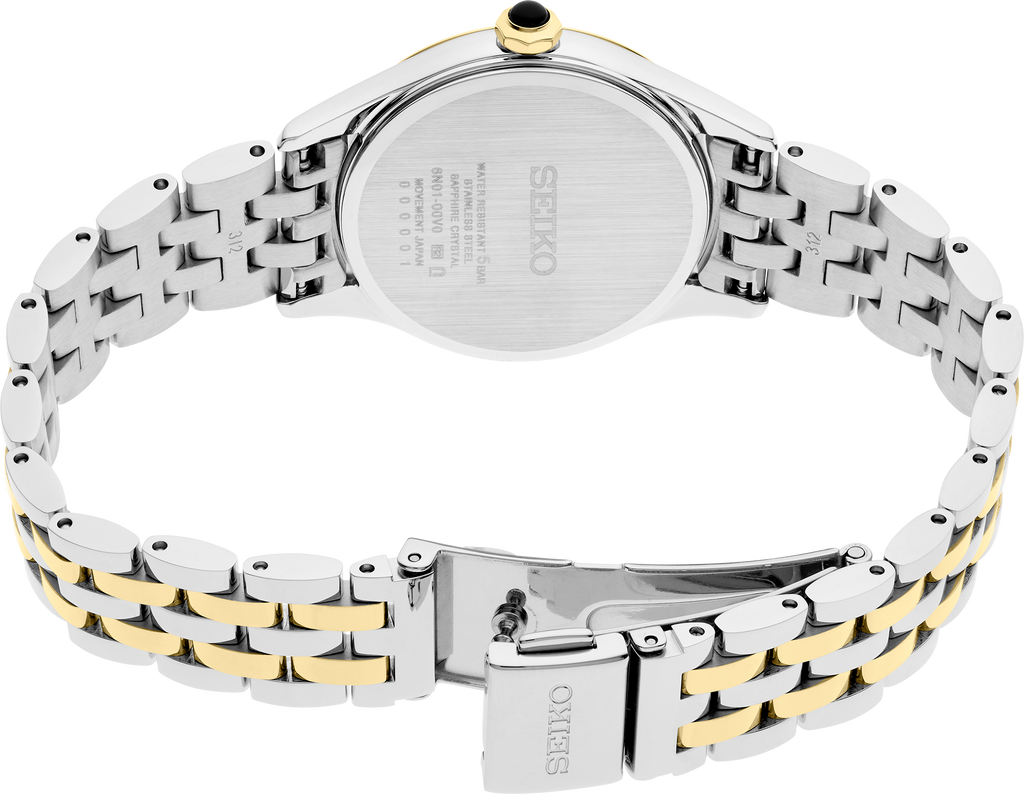 The SUR612 watch is the ideal complement to your elegant outfit and stands out with its elegant case and satin-finish dial. This stainless steel watch features Roman numerals and a pretty black cabochon. It has a water resistance of 5 bar and is fitted with a sapphire crystal.